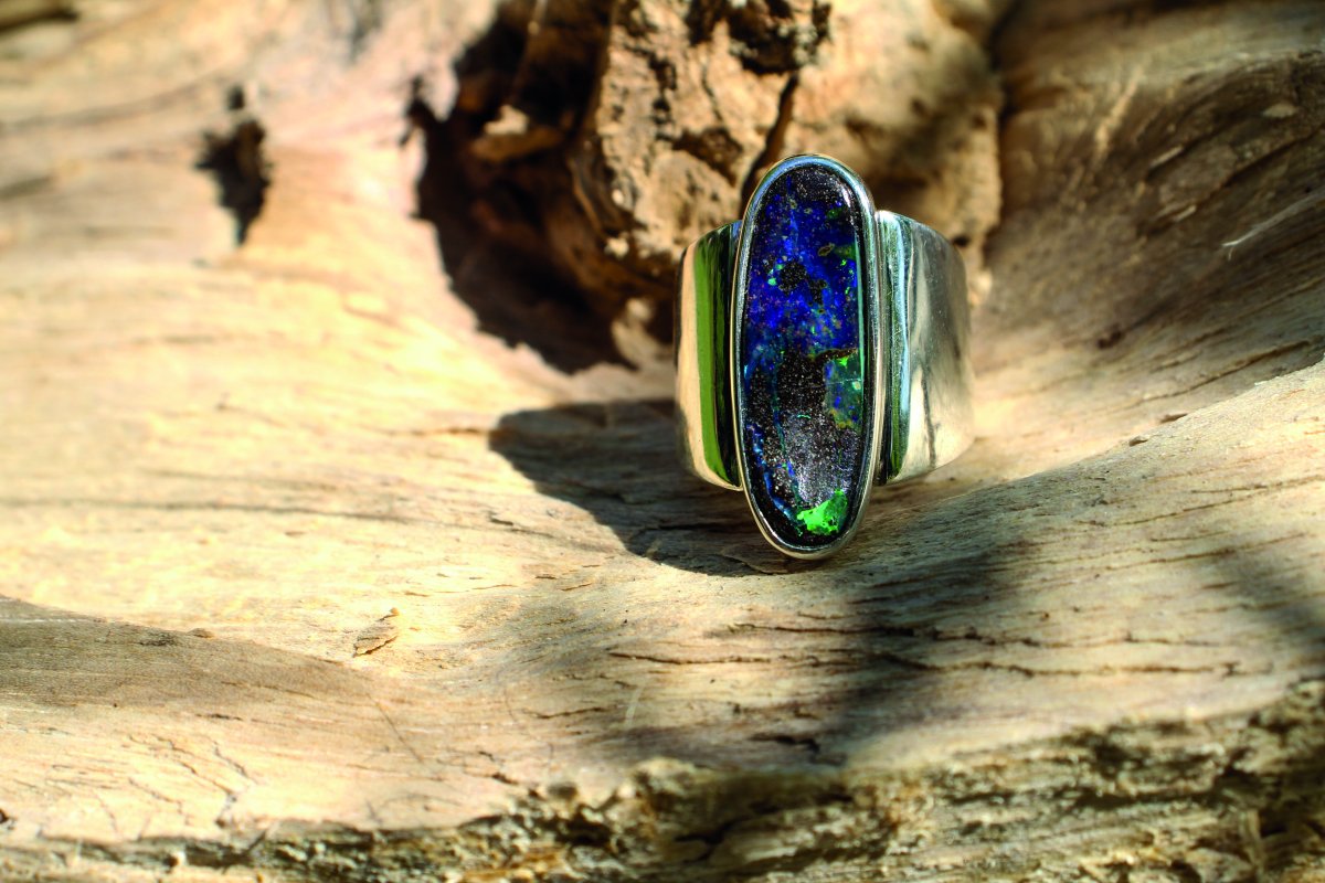 L’Opale Boulder è una varietà pregiata di opale nobile. A differenza di quasi tutti gli altri opali, esso non viene separato dalla roccia madre (matrice) che lo contiene. Viene estratto e successivamente tagliato e levigato seguendo le venature naturali, lasciando visibile la matrice di roccia ferrosa. Questa caratteristica lo rende immediatamente riconoscibile e ineguagliabile: